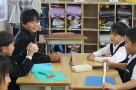 •  ペア学年で体育館、運動場、教室に分かれてなかよし遊びを行いました。これで2回目ということもあり、お互いに温かい声かけをしながら、笑顔で楽しむ様子が見られました。