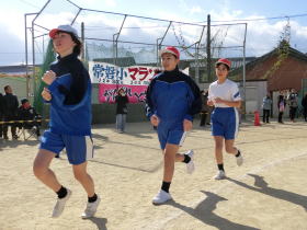 •  11月から体育の時間や休み時間に自分のめあてに向かってマラソン練習に取り組んできました。寒さも厳しい中でしたが、どの子も体育の時間や休み時間に練習を積んできた成果を十分に発揮し、最後まで走り切ることができました。