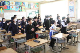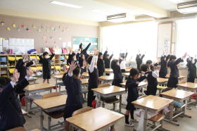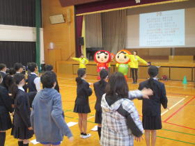 •  今回はインフルエンザ等の感染予防のためリモート形式となりましたが、人権擁護委員の方も来て下さり、一人ひとりが「人権」について考えるよい機会となりました。最後に人権まもるくん、あゆみちゃんと一緒に「手のひらを太陽に」を手話をつけて全校生で歌いました。