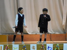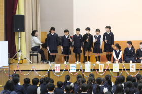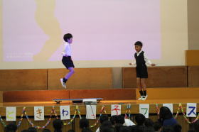 •  児童会の司会のもと、今年度2回目のときわっ子フェスティバルが行われました。なわとびやとび箱、歌にダンス等、思い思いに自慢の技が披露されました。また、音楽クラブによるカップスとトーンチャイムの演奏の発表もあり、きれいな音色が体育館に響きわたりました。