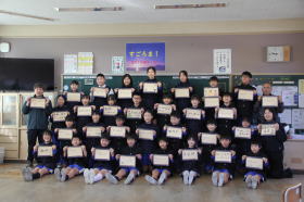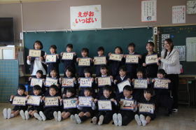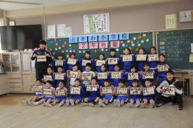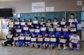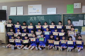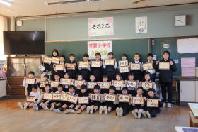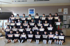 •  常磐小学校、ISS(国際宇宙ステーション)に子どもたちの夢やメッセージを届ける取り組みに参加しています。各クラスごとにISSに届ける写真撮影が行われました。将来の夢や頑張りたいことを書いたカードを持って、笑顔で写真を撮りました。この写真は、モザイクアートになって2026年秋頃にISSに届けられます。